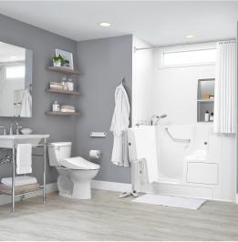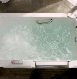 Our tubs feature an ultra-low threshold, built-in safety bar, and wide door for easy entry and exit. They also include an ADA-compliant chair-height seat and a slip-resistant textured floor for added safety and comfort.